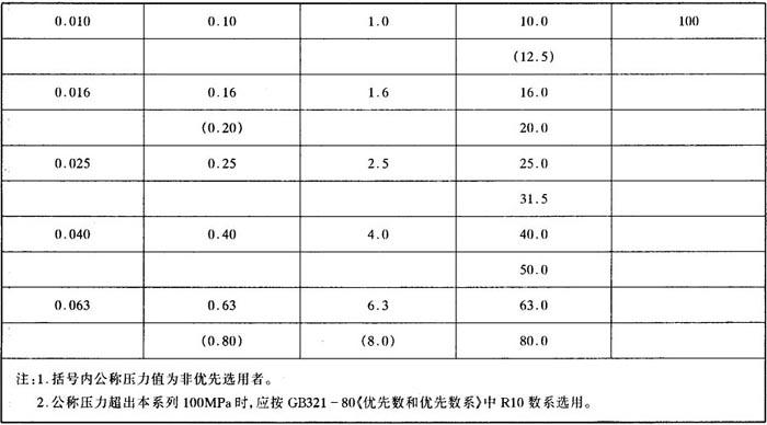 液压气动系统及元件的公称压力应符合表的规定(见表7.3-21)