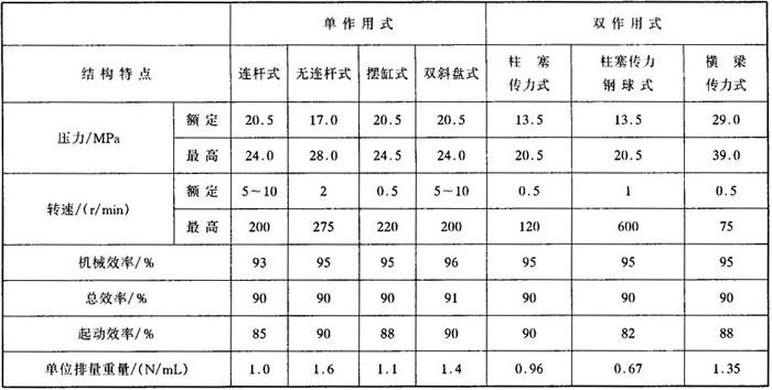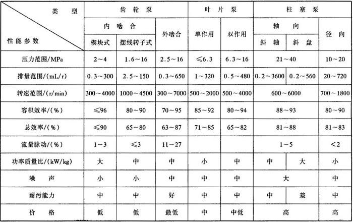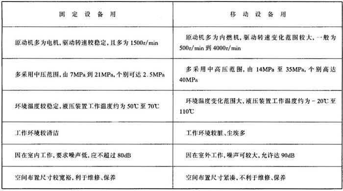 液压泵和液压马达的选择和应用极为灵活,本手册只能在目前的发展水平上提供一些统计资料。 在国民经济的各个领域中,液压泵和液压马达的应用范围很大,但可以归纳为两大类:一类统称为“固定设备用液压装置”,如各类机床、液压机、注塑机、轧钢机等等;另一类统称为“移动设备用液压装置”,如起重机、各种工程机械、汽车、军用车辆、飞机等等。两类液压装置对液压泵和液压马达的选用有较大差异,它们的区别见表8.5-1。 表8.5-1 两类不同液压装置的主要区别  各类液压泵中,比较重要的是轴向柱塞型的斜盘泵和斜轴泵,这两种泵品种多、耐高压、转速高,价格近年来也有所下降,是首选的类型。当然,选用各种液压泵和液压马达时最主要的是满足使用要求,其次是价格、维修保养是否方便等因素。按目前统计资料,所有各类液压泵的性能见表5.5-2。 表8.5-2 各类液压泵性能比较  液压马达的选用,如果采用常速类液压马达,齿轮式、叶片式和轴向柱塞式比较适用,它们的性能参数与表8.5-2上所列相近,但由于在工作时,泵和马达并不完全相同,它们在工作要求方面的区别见表8.5-3。 表8.5-3 泵和马达在工作要求方面的区别  若选用低速类液压马达,可参考表8.5-4上所列各类低速液压马达的主要性能参数,在压力和转速的相应范围内选择。 表8.5-4 各类低速液压马达主要性能参数  |