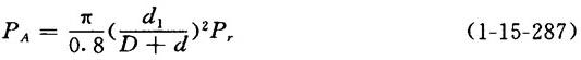 释义 | 液压缸式加压提升机构的附加压力计算 【说明】 采用液(油、水)压缸作为加压抬辊机构可以用50~100个大气压压力的液压,从而在要求压区线压很高的场合也只需用尺寸不大的液压缸。但是液体实际上是不可压缩的,在加压提升机构中如仍采用与前述的气压缸结构相同的普通液压缸,就不能满足加压时具有弹性的基本要求,为此,往往采用液压-气压双作用缸来达到上述要求。如图1-15-33所示,膜片腔中的气压PA与加压油腔中的液压Pr之间的关系见式1-15-287 1-压榨下辊 2-压榨上辊 3-上辊轴承臂 4-液压一气压双作用缸 5-工作活塞 6-工作活塞的活塞杆 7-副活塞 8-膜片 9-压缩空气管 10-加压时供油管 11-抬辊时供油管 【公式】 式中 PA——膜片腔中的气压(Pa) Pr——加压油腔中的液压(Pa) d1——副活塞直径(m) D——橡胶膜片的工作直径(m) d——顶盘直径(m) |