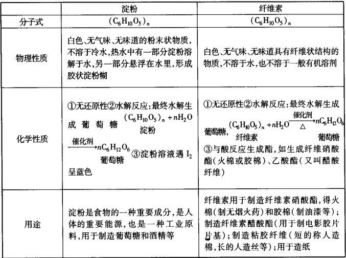释义 | 淀粉、纤维素 注 ❶ 虽然淀粉和纤维素的分子通式相同,但n值不同,二者不互为同分异构体. ❷ 虽然淀粉和纤维素均能水解,但纤维素比淀粉水解困难.淀粉在稀酸或酶作用下发生水解;纤维素用70%的H2SO4催化水解,需水浴加热. ❸ 淀粉水解程度的检查(1)未水解:与Cu(OH)2的碱性浊液混合加热至沸,无红色沉淀产生,说明无葡萄糖存在,尚未水解.(2)已水解完全:加入碘水,无蓝色出现,说明已无淀粉剩余,水解完全.(3)部分发生了水解:分别做上述(1)、(2)两个实验,若既能使Cu(OH)2转化为红色Cu2O沉淀,又能使碘水变蓝,说明部分发生了水解. ❹ 实验室检验糖类水解产物应注意的问题:实验中淀粉、纤维素常在无机酸(如稀H2SO4)催化作用下发生水解,生成葡萄糖,欲检验水解产物葡萄糖,必须先加入NaOH溶液中和催化剂硫酸,再加入银氨溶液或新制氢氧化铜进行检验. ❺ 制取硝酸纤维的实验注意事项:一是要注意配制浓HNO3、浓H2SO4混合液时的次序:必须将浓H2SO4慢慢加入浓HNO3中,且边加边搅拌,而不可将浓HNO3直接倒入H2SO4中;二是必须待混合酸冷却到室温后方能放入棉花浸泡,否则热的混合酸将使棉花脱水、氧化使之发黄甚至发黑;三是从混合酸中取出的硝酸纤维必须用水反复冲洗,否则因沾有混合酸会在晾干的过程中发黄、粘连成块. 例 两位同学设计实验方案,用以检验淀粉的水解程度. 结论:淀粉已完全水解 结论:淀粉尚未水解. 试判断两位同学的实验方案与结论是否正确,并简述理由. (1)同学甲____. (2)同学乙__. 解析 本题是实评价题,考查的是考生对淀粉水解过程的判断,解题时要对每个方案的优缺点进行对照,综合各方案的优点设计合理方案. 答 (1)同学甲结论不正确.由于过量的NaOH可以与碘反应生成NaI和NaIO,因此,无论淀粉是否水解溶液均不变蓝. (2)同学乙的方案与结论均不正确.在酸性条件下,银氨溶液被破坏,不能发生银镜反应,按方案乙进行操作无银镜出现,也可能已水解. |