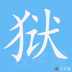 狱,金文=(犬,“吠”,狂叫)+(诉辩)+ (犬,“吠”,狂叫),造字本义:比喻原告与被告之间诉辩激烈。篆文承续金文字形。