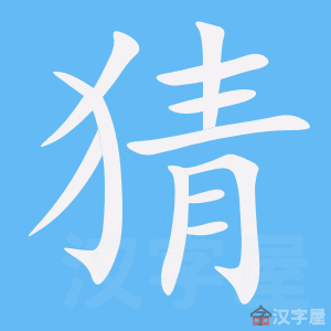 字源解说 猜,篆文 = (犬,猎狗)+ (青,“静”的省略,静默无声),表示猎犬保持静默。造字本义:狙击狩猎中的猎犬保持静默的警觉而不吠叫。隶书 将篆文的 写成 ,将篆文的 写成 。 附 文言版《説文解字》:猜,恨賊也。从犬,青聲。 附 白话版《说文解字》:猜,看家狗因嫉恨盗贼入侵而吠叫。字形采用“犬”作边旁,“青”作声旁。 引申线索