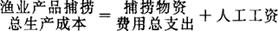 指渔业生产过程中所消耗的捕捞物资和劳动报酬的费用支出。它是考核渔业企业增产和节约两个方面的经济效果的综合性经济指标。其计算公式为: