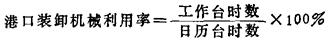 释义 | 港口装卸机械利用率 装卸机械工作台时数占日历台时数的比重。其计算公式为: 式中“工作台时数”是指装卸机械实际从事装卸作业和其它工作的时间,包括转移工作场地不满一工班的途中行驶时间。装卸机械利用率反映装卸机械实际参加装卸工作被利用的程度。减少装卸机械的停工台时,加强对装卸机械的维修保养工作,保持装卸机械技术状况良好,对于提高装卸机械利用率有很大影响。 |