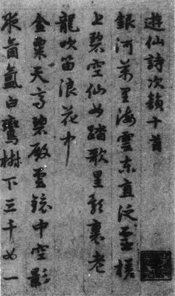 【简介】: 元·郭翼书。纸本。行书。册页。共四开,每开15.3×28.8cm。上海博物馆藏。刊于《中国古代书画图目》(二)。 【赏析】: 据王逢《游仙唱和诗》的题跋,知此诗在王逢应崑山淸眞观道士余后初徵和时早已先和就,时间在至正二十二年(壬寅)之前,诗句大抵骋飞仙遨游之想像,淸隽可诵,书法承二王遗緖。由于王书在唐、宋、元、明时对文人学士的巨大影响,士子学书罕有不受其羁绊,明时更成爲仕进干禄之书,有“院体”之称。而郭翼书法的特点是在王书的结构基础上,力求避免时尙的俗媚,而发掘王书固有的浑雄一面,并融入碑版气息。元季书人,深受赵孟頫影响者十有八九,故书风多甜俗妩媚。元末,有一批文人墨客避乱张士诚治下的吴地,诗文酬答,谈书论艺,杨维桢、宋克即在其中,故此,流丽中见质朴,沉著中见古拙,雍容自若,极见敦重,令人想见这位毕生偃蹇书城的高人风致。