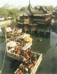 释义 | 湖心亭/九曲桥 位于豫园外,原是豫园的中心,修复后的豫园却与之隔开。湖心亭是建在荷花池上的凉亭,坐在湖心亭可以欣赏满池荷叶,芙蓉出水。九曲桥是连接湖岸和湖心亭的曲桥,形成十八曲。原为木桥,1924年改为钢筋混凝土结构,人行桥上如浮绿波之中。每当夏日,绿波涟涟,红荷点点,呈现出美丽的“城市湖光”。 |