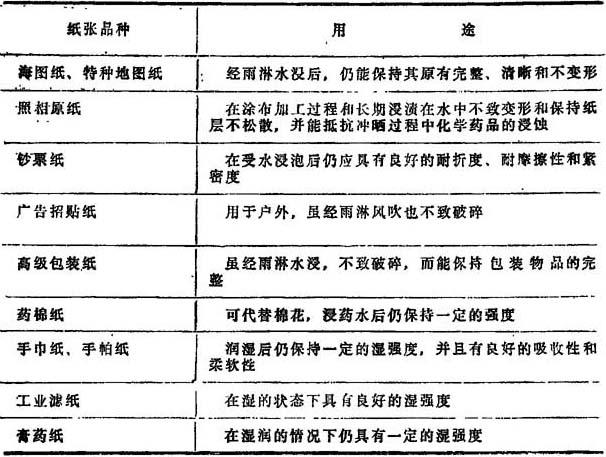 一些需要湿强度的纸张的名称和用途如表10—6—1所示。