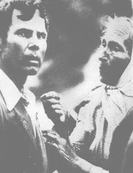 释义 | 源泉 【片头介绍】: 1982 彩色片(宽银幕) 90分钟 苏联莫斯科电影制片厂摄制 导演:阿尔卡季·西莱恩柯 编剧:弗拉吉米尔·洛巴诺夫 阿尔卡季·西莱恩柯(根据叶夫盖尼·诺索夫小说《乌斯维亚斯克的戴钢盔的人》改编) 摄影:艾里兹巴尔·卡拉瓦耶夫 主要演员:弗拉吉米尔·高斯丘辛(饰卡西扬) 伊凡·拉比柯夫(饰赛里凡) 【剧情简介】: 1941年6月,在俄罗斯大地的一个偏僻的农村里,夏天已悄悄地来临。 地里的草长得又密又壮,比庄稼还长得高。村民们决定:必须抢时间把草割掉,否则庄稼难以生长。乌斯维亚塔村的庄稼汉们通宵达旦在割草,他们兴奋得像是在过节一般,手持镰刀一边割草,一边引吭高歌,但却是一个人一个调门,都跑了调。 不知不觉间,太阳已渐渐地升了起来,这些庄稼汉的老婆孩子们带著丰盛的早点前来看望一夜未归的亲人,他们就像郊游那样,一家一户围在地头共进早餐。 这些乐观开朗的庄稼汉用完早餐在河边休息时,和家里人一起欣赏著大自然之美,感到6月清晨的空气是如此洁净和清香。 正当庄稼汉们在地里割草的时候,德高望重、孤身一人的赛里凡爷爷正忙著在村里架设电线杆子。 他费力地独自拖来一根电线杆子,希望把这根杆子树在他家小屋的对面,以后,在这个杆子上会装上一个扩音器,这将会为他打开一个广阔的世界。电线杆子树起后,小伙子库兹玛爬到杆顶上了望,赛里凡问他都看见了什么?他说:“看到了我们的粮食,我们的庄稼汉在割草,还有,看到了通往区中心的路。”停顿了一下之后,小伙子又补充道:“还有,看到了赛里凡爷爷,他在乌里扬娜·玛霍特基娜寡妇家过了夜之后,正走出来,嘿,赛里凡。”面对小伙子恶作剧的玩笑,赛里凡爷爷一时无言以对,显得有些尴尬。 村里和地头都忙著在进行和平建设和劳动的时候,忽然,人们见到远处,在绿色草原的背景上,滚起了一片尘埃,响起了一片马蹄声,原来有一个人骑马朝村子飞奔而来,他吸引了人们的视线。骑马而来的人到了村里,一下马,只说了简短的两个字:“战争!”人们听到这两个字没有任何反应,他们默默地接受了这个严酷的事实。 他们并没有惊慌失措,只是神态更严肃了,脸上的笑容少了。人们自觉地聚集在供销社的台阶上。原来,他们在等候农庄主席买完烟走出来。 画面上一片寂静,战争爆发第一天的这种寂静显得有点阴森可怖。 农庄主席走出来了,他向人们说著一些从报上看来的词句,他平日的果断变成了不知所措。有人问他该干什么?他嘴里虽回答说:“该干什么就干什么,不必问我。”其实他心里也没个数,他随即说:“我到区里去问问。”他骑上马到区里去了。 一个名叫卡西扬的庄稼汉收到了应征入伍的通知,他很快就要去报到。 他给家里劈了好多柴禾,柴禾堆满了板棚,他还抓紧时间把家里该修理的东西都修理一番,最后该考虑到他自己了。他坐在板棚里的工作台旁边,打算修理一双破旧的靴子。妻子走过来,把一双新靴子放在他面前。 他坚持要穿旧的走,理由是没有必要平白无故地去毁了这双新靴子,并说他走后,如家里粮食不够吃,还可以拿这双新靴子去换两普特的粮食。妻子一听就火了,说他还没有出征就说了泄气的话,为什么就认定自己不能生还呢?什么叫做“没有必要白白毁了这双靴子”?她拿起旧靴子,把丈夫刚钉好的鞋掌撕掉,让他一定要像像样样地穿著新靴子去打仗。这一对夫妇的对话中虽然有很多惊叹号,但说话的声音很轻,语调很平静。卡西扬的妻子和母亲都在帮他做准备,她们毫不慌乱,她们的眼中没有泪水,但看得出她们是在经受著痛苦的煎熬。 母亲在为他烤大圆面包,谁备干粮,出发前的准备工作都是按照俄罗斯的传统民俗进行的。 那些收到入伍通知书的人在出发的前夕都到孤单的赛里凡爷爷家里去聚会。 参加过日俄战争的赛里凡身上似乎凝聚著农民的智慧和经验。有人间他:“杀人可怕吗?”赛里凡看看自己曾杀过人的手,又把手藏在桌子下。 他说,直到现在,他想起第一次把一个活生生的人打死时是多么的可怕,随即他又骄傲地给大伙儿看他的乔治十字勋章。他还捧著一本古老的书,告诉在座的人:他们每一个人的名字意味著什么,当他讲这些人的名字的意义时,似乎是在讲他们每一个人的实质,讲这个人的崇高的使命。 不仅是那些应征入伍的人在克制自己的感情,他们的家属也在克制自己。卡西扬的妻子娜塔莉娅在集合前的这段日子里没有掉一滴眼泪,为了不给丈夫增加心理负担和痛苦。 庄稼汉们热爱自己家乡的一草一木、土坡与河流。在他们应征入伍那天清晨,他们还在那清澈的小河里洗了一个澡,希望家乡的河水会祝福他们,给他们带来好运。 从未排过队的庄稼汉稀稀拉拉地集合了,他们一人一个调地回答著点名。集合的队伍走出了村子,一个女孩拿著她父亲的手风琴追来,她想让父亲把琴带走,她边跑边喊著“爸爸!”,这声音消失在静寂的空中…… 大地的全景画面越来越大,人们从四面八方汇集,人影越来越小,只听见他们的脚步声,脚步声越来越响,像是亿万人的脚步声。 渐渐地,画面上的音乐轻了下来,一片静寂,时间仿佛停顿了…… 。【鉴赏】:本片的导演阿尔卡季·西莱恩柯没有经历过卫国战争,他是战后出生的人,《源泉》是他拍摄的第一部影片,但他却很有深度地用丰富的电影语言将叶·诺索夫的这部小说搬上了银幕。 这是