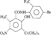 释义 | 溴氟硝胺 C19H18BrF3N2O4=475.26 CAS-41113-86-4 N-[4-溴-2-(三氟甲基)苯基]-3-(1,1-二甲基乙基)-2-羟基-6-甲基-5-硝基苯甲酰胺。 N-[4-Bromo-2-(trifluoromethyl)phenyl]-3-(1,1-dimethylethyl)-2-hydroxy-6-methyl-5-nitrobenzamide. 4′-溴-3-叔-丁基-α′,α′-三氟-5-硝基-2,6-甲酚基-邻-甲苯胺。 4′-Bromo-3-tert-butyl-α′,α′-trifluoro-5-nitro-2,6-cresoto-o-toluidide. 驱虫药。 溴沙尼特。 Bromooxamide,SKF 61636. INN,USAN. |