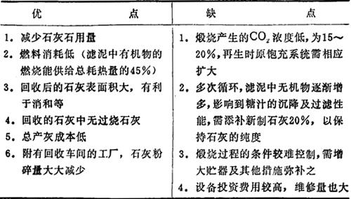 当产生石灰石不足、价格较贵等情况时,自滤泥中回收CaO及CO2再用于制糖生产是一个可取的方法。 干滤泥中含有73~80%(对干泥重)的CaCO3,将滤泥煅烧至一定温度后,CaCO3即分解成CaO及CO2。 (一)工艺过程 湿滤泥→脱水→煅烧→石灰及二氧化碳 (二)主要设备 1.输送设备 (1)含水较多或经掺水的滤泥,经搅拌后用泵输送(含水>50%)。 (2)含水不多的滤泥可用螺旋输送机输送。 (3)含水较少的滤泥可用胶带输送,也可采用风力输送的方法。 2.脱水设备 (1)晾晒场;(2)离心分离机或;(3)滚筒干燥机。 3.煅烧设备 (1)卧式滚筒煅烧炉 是一个衬有耐火砖的回转圆柱筒体,它的倾斜角为3~5°,物料于高端进入,在低端(排料端)有一燃烧室以供给需用的热量。沿炉长度的物料预热段、煅烧段及冷却段三者间的比约分别为40%、55%及5%,工业规模炉直径为1.5~4米,炉直径与长度之比为1∶30~40。用于回收滤泥的煅烧炉,日产一吨石灰需煅烧炉的容积为3.5~4.5米3。 (2)立式多层煅烧炉 是一个衬有耐火砖的立式圆柱体,中间有多层由耐火砖构成的炉床。物料自顶部进入后经由各炉床上的回转耙齿推移至下一层炉床,直至低部排出。下几层炉床均有燃烧室。工业规模炉的直径为1.2~6.5米,炉床层数自4至17,每层炉床的有效煅烧面积约为70%。用于回收滤泥的煅烧炉,日产一吨石灰需有效煅烧面积2.5米2,炉床可分为12层。 上述两种型式的对比为卧式的热效率较高,可达50%(立式可达30%),且设备的维护费用较小(立式的炉内结构较复杂);但卧式的操作控制,特别是温度控制较难。两者的CO2含量均较低,为15~20%。 (三)技术操作要点 (1)进料水分以35~40%为宜。 (2)炉内物料大小以不超过25毫米为宜,应避免形成粉状物。 (3)煅烧段内最高温宜在1100℃。 (4)进料水分及粒度、煅烧温度、炉的转速(或耙齿转速)、抽气量、入料速度等均应严格配合,保持相对稳定。 (四)滤泥再生的优缺点 表7-93 滤泥再生的优缺点  |