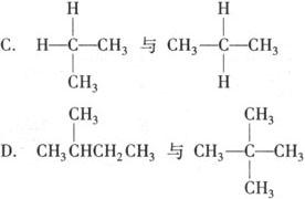 烃失去一个氢原子后所剩余的原子团,一般用“R—”表示.如: —CH3(甲基)、—CH2CH3或—C2H5(乙基)、—C6H5或 (苯基) 注 基与根离子不同,基是电中性的,不是单独存在的,只能结合在化合物分子.如lmol—CH3中含9mol电子. 例 (2000·理综·10)下列各对物质中属于同分异构体的是( ). A. 与 C B.O2与O3  解析 选项A中 与 这两种原子,质子数均为6,但质量数不同. 含有6个中子, 含有7个中子,它们都是碳的同位素.选项B中O2与O3是由氧元素组成的两种单质,是同素异形体.选项C给出两个有机分子的结构简式,表面上看不同,实际表示的是同一种分子——丙烷.选项D中两个结构简式都表示含有五个碳原子的烷烃,分子式为C5H12.但从结构简式分析,它们的结构不同,在 中,有一个碳原子与其他 4个碳原子直接相连,而在CH3CH(CH3)CH2CH3中没有这种类型的碳原子,所以它们互为同分异构体. 答 D. |