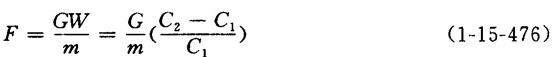 【说明】 鉴于多烘缸的烘干部上纸幅干燥过程的复杂性,造纸机所需的有效干燥面积通常是采用单位指标法进行计算的。 【公式】  式中 F——干燥部需要的烘缸干燥有效面积(m2) G——纸机每小时生产能力(kg纸/h) G=0.06qBV (1-15-477) q——纸的定量(g/m2) B——卷纸机上纸的宽度(m) V——纸机车速(m/min) m——烘缸单位出力[kg水/(h.m2)],见式1-15-481 W——每生产1kg纸所蒸发的水量(kg水/kg纸) C1、C2——进、出干燥部纸的干度(%)  |