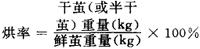 鲜茧加工后的干茧(或半干茧)重量与鲜茧重量的百分比。即100kg鲜茧能烘多少干茧(或半干茧)的百分比。其基本式: