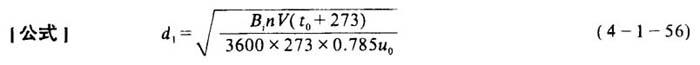 释义 | 烟囱的计算 1.烟气在烟道中的温度降计算 P——烟囱每米高度产生的抽力(mmH7O/m)(由表4-1-12查得) 表4-1-12 烟囱每米高度产生的抽力P(mmH2O/m) 注:由上表查得的数值,乘以烟囱高度,得出烟囱的抽力,但实际上还应减去烟囱本身的阻力。 H——烟囱高度(m),按卫生标准,烟囱高度采用表4-1-13中所列数值;用 低灰分燃料(每4186kJ/kg中灰分少于5%)时,烟囱高度参考使用下值: a.当燃料消耗为50~100t/h时,H=60m; b.当燃料消耗为100~200t/h时,H=80m; c.在锅炉房20m半径内设置高于15m的邻近建筑物时,最小的烟囱高度取用45m 表4-1-13 烟囱高度选用表 注:α为烟囱排出灰尘总数 ❸ 烟囱抽力与烟囱高度的关系 式中 P——烟囱抽力(Pa) γ1——空气在温度t1下的重度(N/m3) γ′1——空气在标准状况下的重度(N/m3),取12.68N/m3 t1——烟气在烟道中的温度降(℃) γ2——烟气在温度t2下的重度(N/m3) γ′2——烟气在标准状况下的重度(N/m3),取13.14N/m3 t2——烟气在烟囱中的温度降(℃) 6.烟囱出口直径d1的计算 式中 d1——直径(m) B1——每台锅炉计算燃料消耗量(冬季用量)(kg/h) n——利用同一烟囱的锅炉台数 V——计入漏风系数时烟囱出口烟气量(m3/kg) t0——烟囱出口处烟气温度(℃) u0——烟囱出口处烟气流速(m/s),见表4-1-14 表4-1-14 烟囱出口处烟气流速u0(m/s) [注意]❶ 考虑到积灰将缩小烟气流通截面,故由上式计算所得的数据,应适当加大,一般不超过100mm。 7、烟囱的平均直径d 式中 d1——烟囱出口直径(m) d7——烟囱入口直径(m) 8.烟囱阻力计算 ❶ 烟囱摩擦阻力h1的计算 式中 h1——烟囱摩擦阻力(Pa) λ7——烟囱摩擦阻力系数,砖或金属烟囱均为0.04 u——烟囱内烟气流速(m/s) γ——烟囱内烟气平均重度(N/m3) g——重力加速度(9.81m/s2) 其它同上 ❷ 烟囱出口阻力h7的计算 式中 h2——出口阻力(Pa) λ,——烟气出口阻力系数,取1.0 u0——烟囱出口处烟气流速(m/s) γ0——烟囱出口处烟气重度(N/m3) g——重力加速度(9.81m/s2) ❸ 烟囱阻力h的计算 式中符号含义及单位同上 |
