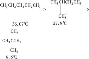 1.烷烃的概念:碳原子跟碳原子都以单键结合,碳原子剩余的价键全部跟氢原子相结合,使每个原子的化合价都达到“饱和”的链烃叫饱和链烃,或称烷烃. 2.烷烃的通式:CnH2n+2(n≥1). 3.烷烃的通性:烷烃的化学性质与CH4相似.一般比较稳定,在通常情况下跟酸、碱和酸性高锰酸钾等氧化剂都不起反应,也不跟其他物质化合.但在特定条件下也能发生下列反应: ❶ 取代反应; ❷ 氧化反应(燃烧); ❸ 分解反应(裂解反应). 烷烃燃烧的通式为:  4.烷烃的物理性质的递变性. 随著分子里碳原子数的递增,呈规律性变化. ❶ 状态:气液→液态→固态. ❷ 沸点:逐渐升高. ❸ 密度:逐渐增大. 注 烃类的熔、沸点的变化规律: ❶ 有机物一般为分子晶体,在有机同系物中,随著C原子数增加,相对分子质量增大,分子间作用力增大,熔、沸点逐渐升高.如:气态烃:CxHy,x≤4. ❷ 分子式相同的烃,支链越多,熔、沸点越低.如沸点:  ❸ 含碳原子数≤4的烃及新戊烷常温下为气态. |