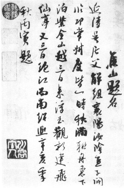 释义 | 焦山题名 【简介】: 宋·吴琚书。纸本。行书。凡六行,每行字数不一。原帖与行书识语同在一纸。31.3×39.4cm。台北故宫博物院藏。《石渠宝笈续编》著录。刊于《中国美术全集·宋金元书法》、台湾《故宫历代法书全集》(十一)。 【赏析】: 宋代书法大致三派。苏、黄“尙意”,蔡襄代表“古典”派;吴琚之所师从,是以“复古爲新”在风格上创造成就极高的米芾者流,这至少表明他在继承与创造问题上是持积极态度的。 事实上也说得过去。虽然在功力与识量上吴不逮其师,但其对艺术的感觉是相当敏慧的。比起著名的《苕溪诗帖》等,吴琚的《焦山题名》无疑有了他自己的东西。首先是在笔墨节奏的变化上似多于前者,更具有自然蕴藉意趣,纤秾随得若比作弦乐中的大小提琴重奏似恰切;墨色的变化在米芾,唯《多景楼诗》与《虹县诗》略明显。由于米老在笔锋—所谓“锋出八面”—运用发挥上极尽天分,无意略有忽视。对书法作品情貌的变化,对此,《焦山题名》是作了一些补充的。米老置字,大多将重心斜向右下,使字势向左倾动的情态一目了然。而这件书迹则反其道而行之,我们感觉吴琚是在有意无意间将笔法的涩势美化用到了章法之上。由于字态的右倾,使得向下贯行的行气与向左扩展的局势发生磨擦,在磨擦中我们体会到了其形章的力度—这是吴琚的创作。由于书写节奏的明快与形章的涩势,在情调上达到了生动与迟重的和谐。 尽管比米老的气字轩昂尙有间距,但吴琚在这件作品的一些成功,使后世学米者,出其右者无多。 |