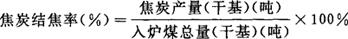 释义 | 焦炭结焦率 即成焦率,指炼焦炉在报告期内生产的焦炭产量占装入煤量的百分比。 它反映煤的节约或浪费情况,并反映焦炉生产情况的好坏。成焦率越高,每吨焦炭耗煤越低。其计算公式为: 式中,焦炭产量是指干焦数量,包括块焦和粉焦。其计算公式为: 干焦产量(吨)=湿焦产量(吨)×(1-焦炭含水分%) 装入煤量是指装入干煤量。其计算公式为: 干煤装入量(吨)=洗煤装入量(吨)×(1-洗煤含水分%) |