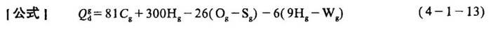 释义 | 煤的工业分析和元素分析换算 [说明]对于煤的分析,有时因实验条件的限制,只能作简单的工业分析,而在热力计算中,又必须知道元素分析数据,为此需进行两者的换算。 1.燃料基之间的换算因数 [说明]见表4-1-1。 表4-1-1 燃料基的换算因数 注:表中W表示水分,A表示灰分,g表示工作基,f表示分析基,Z表示干燥基,r表示可燃基。 2.将工业分析中的固定碳及挥发分换算成去水干燥可燃基 式中 C′r——可燃基固定碳(%) C1——工业分析中的固定碳(%) 47——工业分析中的灰分(%) V.——可燃基挥发分(%) V1——工业分析中的挥发分(%) 3.可燃基元素分析换算经验计算 4.可燃基元素分析换算为工作基元素分析 式中 Ag、A1——分别表示工作基和可燃基灰分(%) Ha、Hr——分别表示工作基和可燃基的氢元素(%) Ca、Cr——分别表示工作基和可燃基的固定碳(%) Oa、Or——分别表示工作基和可燃基的氧元素(%) Wa——工作基水分(%) Na——工作基氮元素(%) S8——工作基硫元素(%) 5.发热量的计算——门捷列夫公式 式中 其它同上 6.由氧氮发热量计算高位发热量 式中 Qg——高位发热量(kcal/kg) Qd1——氧弹发热量(kcal/kg) 22.5SBt、0.0015Q81——氧弹中硫的氧化热及溶解热(kcal/kg) 7.元素分析的正确性校验计算 [说明]用门捷列夫公式计算出来的数值是比较准确的,虽略有出入,但数值不超过150~200kcal/kg,因而,常用以校验元素分析的正确性。 式中符号含义及单位同上 |