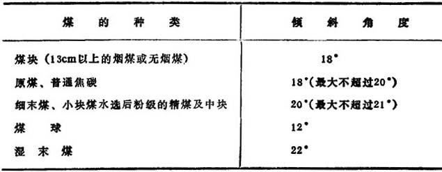 释义 | 煤的运输 1.皮带运输机倾斜角和煤种关系(表14—2—52) 表14-2—52 2.皮带运输机的体积运输量(表14-2—53) 表14-2—53 3.皮带运输机的设计及安装时应注意五点 (1)倾斜运输机一定要有制动器: (2)所有皮带运输机上都应装有消除粘在皮带及滚筒上燃料的刮煤器: (3)各转运点要密封好: (4)为了避免堵塞,对工作水分小于30%的煤来说,转运煤斗倾斜角不小于55°,转运煤管倾斜角不小于50°:对于工作水分不大于30%的煤来说,转运煤斗倾斜角不小于65°,转运煤管倾斜角不小于60°: (5)当运煤量在30t/h以下时,可采用斗式提升机。 |