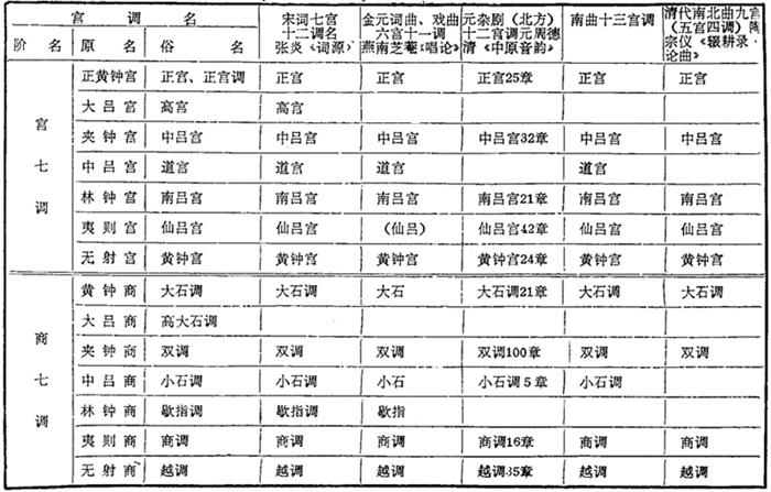 释义 | 燕乐二十八调 我国古代音乐分类术语。 隋、唐以来燕乐所用的宫调。燕,即宴,宋代陈肠《乐书》作讌,均为宴饮之意。“燕乐”一词,始见于《周礼·春官》:“磬师:掌教击磬……教缦乐燕乐之钟磬。 ”先秦燕乐的含义,略同于东汉以后的食举乐。隋以后的燕乐,是指宫廷宴饮时所奏的音乐。唐燕乐和宋燕乐,均为广义的“燕乐”,是宫廷中使用俗乐的总称。 沈括《梦溪笔谈》:“先王之乐为雅乐,前世新声为清乐,合胡部为燕乐。”宫廷中所用的燕乐是相对于雅乐而言的。 燕乐是汉族俗乐(“清乐”之主体)与境内各民族及外来俗乐(“胡部”乐)之总称。宋教坊“燕乐”分四部:大曲部、法曲部、龟兹部、鼓笛部。唐九部、十部乐中的“燕乐”经五代传入辽,成为辽国的“大乐”。北宋教坊“燕乐”于靖康(1127)年间入金,金称为“散乐”。 辽、金以“大乐”、“散乐”与本民族、其他民族之乐合称“燕乐”。唐、宋两代以外的各代“燕乐”,都据民间俗乐的流变情况而有异同,但一般仍为宫廷及民间所用俗乐之总称。因此,又称“俗乐二十八调”,简称“二十八调”。 二十八调在传统上按照宫七调、商七调、角七调、羽七调分类。这种四调系统,有两种解释。第一种解释以琵琶四弦为四种调高,即四均。每均七调,即七种调式。清代凌廷堪《燕乐考原》力主此说。第二种解释认为燕乐为七均,即七种调高,每均四调(四种调式),北宋沈括、南宋蔡元定、张炎都主此说。 二十八调的音位,由于隋、唐资料不足,至今仍难确切断定。 七角调尤其如此。唐宋二十八调,近人杨荫浏据沈括《补笔谈》及其它文献所记,列有:“唐燕乐二十八调表”、“依沈括《补笔谈》列二十八调表”、“北宋燕乐二十八调用音比较表”见743、744、745页表。 唐燕乐二十八调表 ( 根据有关文献,制定“词、戏曲宫调情况表”、“古今调式表”见746页表。 词、戏曲宫调情况表 |