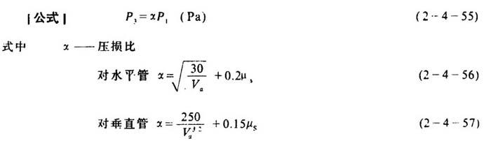 [说明]该损失在整个损失中占的比例最大。在直管的压力损失,一般可根据纯空气管压力损失乘以实验系数(压损比)来计算。