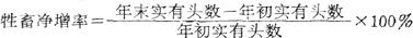 指牲畜年内净增头数占年初实有头数的比重。用百分数表示。反映畜群扩大程度的指标。按各种牲畜分别计算。
