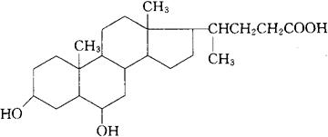 释义 | 猪脱氧胆酸[典] C24H40()4=392.58 CAS-83-49-8 3α,6α-二羟基-5β-胆烷酸。 3α,6α-Dihydroxy-5β-cholanic acid. 降血脂药。降低血中胆固醇,用于高血脂症。 异去氧胆酸。 Hyodesoxycholic Acid,Hyodeoxycholic Acid. 猪脱氧胆酸片。 MI. |