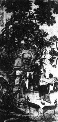 释义 | 猿猴献果图 【作品赏析】: 此画为《十六罗汉图》(仅存三幅)之一。 树下罗汉,形貌古怪,前后有猿、鹿,款“开禧丁卯(1207)刘松年画”一行在石上。佛教在唐代以后,由于受社会政治经济的发展所形成的思想意识转变的影响以及和儒学思想相融和,逐步走向世俗化,因而佛教艺术的题材中也出现了接近现实生活的罗汉(罗汉在佛教中是已修得道果、无一切烦恼、无生死轮回的圣哲)。 图中罗汉裸露的胸、肩部的肌肉和骨胳结构非常准确,头部的描写更具神韵。罗汉略作低头颦眉沉思状,但这似乎并没影响他关心地注视身边的两只驯鹿,嘴角露出一丝和善的嘲笑。 罗汉的造型虽仍囿于传统风格,有著明显的西域特点,但在刘松年的笔下并未流于怪异,除了头上那个有些生硬地加上去的灵光圈外,完全是个世俗化的人物。童僧清秀文雅,翘首向上,带著天真的微笑,双袖合抱向前去接树上猿猴扔下的果子。 这富于戏剧性的细节描写淡化了此图的宗教气氛,流露出一种世俗的欢乐。猿的活泼和鹿的温顺描写得非常成功。 此画的风格属于刘松年工整细润一类。人物、动物的造型均用铁线描,用笔顿挫刚劲,尖俏爽利,每个部位及转折都运转自如;在十分规整的铁线中又以行笔的徐疾变化所形成的浓淡细微差别来表现不同的结构。如罗汉僧袍的外部用浓墨粗笔,行笔较慢,柔浑圆曲;内部用线则是淡墨隐约,疾如蛇舞,从而表现了内外部不同衣料的质感。老树的行笔古拙方劲,以交错繁复的线条画出树纹,霜皮皴裂,似有剥落之感。 树叶勾勒工整,错落有致。刘松年的人物画用墨也十分考究,依据结构特点,略施晕染,显出阴阳向背。 罗汉眉弓下,须眉处都染得轻松微妙,较好地表现了人物神态。罗汉头顶上的光圈的用墨更是独具匠心,在光圈内用淡墨晕染,造成一种朦胧迷离的效果,不仅表现出光圈的透明感,还处理好了背景的虚实关系。 构图上非常注意疏密对比,如背景是几种树干枝叶的复杂交错,繁而不乱,天空和前景的草地也处理得十分简洁,留出大片空白,在这种对比中衬托画面上作为主体表现的人物和动物。。