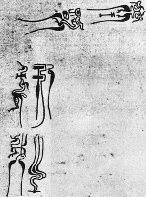 【简介】: 春秋吴国器铭,铭文爲错金鸟虫书。六字。文物出版社《商周靑铜器铭文选》(二)收入摹本。  【赏析】: 在春秋晚期和战国早期的一百五、六十年中,吴、越、楚、蔡、宋等国盛行鸟、凤、龙、虫书各种字体,把它们刻在铜器兵器上并施加错金工艺,观之富丽堂皇,装饰性极强。这些字体的特点是以鸟类、鸾凤、夔龙、虫蛇类的形象,或做爲字体的外饰,或巧妙地嵌入字形之中,或只取其一部分,或使字形的线条屈曲蜿蜒而象徵地摹拟虫蛇的形神动态,或把多种形式揉合于一字一器,千万变化,不一而足。 《王子于戈》以二夔龙加于“王”字之上;“子”字下端拟虫形,侧饰夔龙;“于”字用西周金文写法,侧饰简化夔龙;“之”字线条几番回绕,拟虫形;“用”字上饰简化鸟首,下饰鸾凤;“戈”字以简化凤形嵌入字中,合以虫形线条。如果除去装饰,其字并无特出美感;把它们放到一起合观,印象则又不同。尤其是那些精美的线条,令人叹爲观止。应该看到,这是先民对于文字的一种有意识的美化,反映了一种理解。但因其“非文字之常”,是一种对书法艺术的扭曲性追求,即注定了它们寿命不长。面对这种惨淡经营下的艺术品,我们不禁产生了一种失落感。 |