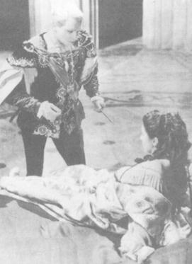 释义 | 王子复仇记 【片头介绍】: 1948 黑白片 142分钟 英国双城影片公司摄制 制片人兼导演:劳伦斯·奥立弗 编剧:劳伦斯·奥立弗 艾伦·登特(根据莎士比亚戏剧《哈姆雷特》改编) 摄影:德斯蒙德·迪金森 主要演员:劳伦斯·奥立弗(饰哈姆雷特) 琼·西蒙丝(饰莪菲莉娅) 艾琳·赫莉(饰葛楚德) 巴兹尔·西德尼(饰克劳狄斯) 本片获1948年美国影艺学院最佳影片、最佳男演员、最佳美工、最佳服装四项奥斯卡金像奖,威尼斯国际电影节金狮奖及最佳女演员,最佳摄影奖,好莱坞外国记者协会最佳影片、最佳男演员两项金球奖,纽约影评协会最佳男演员奖,英国电影学院最佳影片奖 【剧情简介】: 丹麦王国的城堡里,霍拉旭和另外两名守城的官兵发现了一个奇怪的幽灵。 他很像死去的先王,当北极星升起在夜空,他就神秘地出现;一旦公鸡啼晨,他又匆匆消逝。 先王突然去世尚不足月,王后葛楚德就改嫁国王的弟弟克劳狄斯;克劳狄斯因此篡夺了王位。这件事强烈刺激了年轻的王子哈姆雷特:他为父亲的去世极度悲伤;又为母亲的乱伦感到耻辱。对于新国王,哈姆雷特非常反感,觉得他一点也不像自己完美的父亲。 听了霍拉旭的报告,哈姆雷特决心去亲自等候幽灵。 深夜,幽灵重新出现了。 他向哈姆雷特招手,引导哈姆雷特来到城堡尽头,并告诉哈姆雷特,他就是先王的灵魂,正在炼狱受著酷刑。他并非像传闻所言,是在花园睡觉时被毒蛇咬死,而是遭到了弟弟克劳狄斯的暗害。 他要求儿子为自己复仇,但复仇时不要玷污了自己的品质,并且不能伤害自己的母亲,至于王后的罪恶,由上天惩罚就行了。哈姆雷特让亲历其境的几个人诅咒保密,立誓报仇。 为了复仇,哈姆雷特采取了装疯的策略,以便消弭叔叔克劳狄斯的疑心。从此,哈姆雷特在服装和言行上都变得狂妄怪诞起来。 王后不知内情,以为儿子是因为哀悼亡父及爱情的缘故才变成这样。然而,克劳狄斯并不放心,打算将王子放逐到英国。 哈姆雷特热恋著御前大臣波洛纽斯的女儿莪菲莉娅,他给莪菲莉娅写信,一再表示爱慕。但波洛纽斯和莪菲莉娅的哥哥莱阿替斯都反对这门“不现实的婚姻”,他们告诫莪菲莉娅:哈姆雷特的地位太高,小心上当受骗。可莪菲莉娅无法摆脱对于哈姆雷特的深情,她不断试探哈姆雷特。可哈姆雷特为了伪装得更像,不敢向心爱的姑娘表露真情,仅仅暗示自己真挚的爱。这使莪菲莉娅的精神十分痛苦。 宫中来了一班戏子,哈姆雷特借演出前的机会继续装疯,他在爱情折磨下说出的双关语进一步刺伤了莪菲莉娅。 波洛纽斯处心积虑地刺探哈姆雷特,可总猜不透王子的心。 戏班演出的是和谋杀先王相仿的剧情,哈姆雷特暗中观察叔叔的反应。 从国王失态的神色中,哈姆雷特证实了幽灵说出的真相,他将自.己的感受告诉了挚友霍拉旭。 良心的谴责搅得克劳狄斯坐立不安,他祈祷上天的宽恕。 此时哈姆雷特恰在其侧,当王子正要动手时,一个念头制止了他——此时复仇正遇罪人忏悔,等于将恶人的灵魂送上天堂。必须在恶人干著伤天害理的勾当时再砍倒他,这样克劳狄斯的灵魂只能坠入地狱。高贵的哈姆雷特终于放弃了这次复仇的良机。 在母后的寝室,哈姆雷特斥责王后葛楚德。 王后误以为哈姆雷特会将自己杀死,恐惧地叫嚷起来。同时,帷幕后也发出了“救命!救命!救命!”的呼叫。哈姆雷特认为是国王藏在里面,拔剑刺去,没想到扎死的是充当密探的波洛纽斯。借责备波洛纽斯的愚蠢,哈姆雷特又在灵魂上狠狠鞭挞了母亲的背叛,使得王后心如刀割。 这时,幽灵重新出现,他要求哈姆雷特帮助母亲解脱良心上的折磨。 国王发现了波洛纽斯的死,更加怀疑哈姆雷特。他要王子立即出发去英国,并在捎去的信中要求英王将哈姆雷特处死。没想到哈姆雷特出海后遇上海盗船的袭击。 交战中哈姆雷特作了海盗的俘虏。海盗们为求日后得到报答,优待了丹麦王子,并将哈姆雷特释放。哈姆雷特信告霍拉旭火速赶来,护送他回国。 回国后,哈姆雷特在墓地遇上一位掘墓人,正当他们进行一番充满哲理的对话时,来了一支送葬的队伍。队伍中有国王、王后和臣子们,可葬仪却很草率。哈姆雷特满腹狐疑,主教告诉他:被埋葬的是一个自寻短见的姑娘。按照教规,这种死法只能葬身荒野;只因上头有令,才得以安埋墓地。这姑娘就是哈姆雷特心爱的莪菲莉娅。 原来,莪菲莉娅得知父亲竟然死在恋人的手里,哀痛欲绝,很快就神经错乱。姑娘唱著歌,用鲜花野草编成花圈。 当她要将花圈挂在河边的柳树上时,树枝断了,姑娘落水身亡。 莱阿替斯因父亲和妹妹的惨死深恨哈姆雷特,他跳进妹妹的坟墓,悲痛欲绝。 哈姆雷特不能忍受有人比自己更加痛苦,也一块儿跳了进去,他说自己对莪菲莉娅的爱比四个哥哥还要深。哈姆雷特的表白并没取得莱阿替斯的谅解,国王又用心险恶地从中挑拨,莱阿替斯提出了要和哈姆雷特比武;哈姆雷特不明真相,接受了挑战。 在国王的安排下,莱阿替斯准备了一把尖头毒剑,哈姆雷特使用的却是无毒的圆头剑。莱阿替斯起先麻痹哈姆雷特,一旦得手,就用毒剑给他致命的一击。 哈姆雷特仍不知情,他无意中将自己的无毒剑换过了莱阿替斯的有毒剑,并回刺了对方。这样,莱阿替斯也自食其果。 这当儿,王后突叫中毒。原来国王给哈姆雷特备下的饮料中下了毒,王后毫无防备地喝下了。哈姆雷特顿起疑心,当即