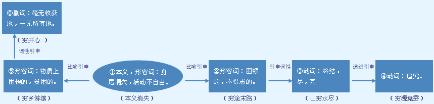 贫困,缺乏财物。可受程度副词修饰。 a.常作谓语,可带补语。 我们的国家还很~|他越来越~|她家里经常~得揭不开锅|~得很。 b.作定语。 我们这里是一个很~的地方。 用尽;推究到极点。常作谓语,必带宾语。 他~十年之功,在这一领域取得了突破性的成就。 【近】 〈形〉贫 【反】 〈形〉富 阔 【词语】 穷兵黩武 穷愁 穷乏 穷竭 穷尽 穷究 穷寇勿追 穷困 穷忙 穷年累月 穷山恶水 穷奢极侈 穷人 穷酸 穷途潦倒 穷途末路 穷乡僻壤 穷凶极恶 穷源溯流 穷则思变