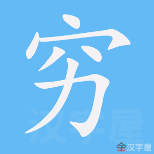 qióng ❶动尽;完。山穷水尽|层出不穷|日暮途穷 →❷副表示程度高到了极点。穷凶极恶|穷奢极侈 →❸动彻底追究;深入探求。追本穷源|皓首穷经 ❹ 形 彻底;极力。穷追猛打|穷究 →❺动使尽;用尽。穷兵黩武|穷毕生精力 →❻形处境困难,没有出路。穷则思变|穷寇 ❼ 形 贫困;缺少钱财。穷日子|贫穷 ❽ 副 〈口〉表示本不该如此而偏偏如此;财力或能力达不到却勉强去做。穷开心|穷讲究|穷凑合 →❾形边远;偏僻。穷乡僻壤|穷巷