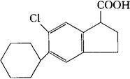 释义 | 环氯茚酸 C16H19ClO2=278.78 CAS-34148-01-1 6-氯-5-环己基-1-氢化茚羧酸。 6-Chloro-5-cyclohexyl-1-indancarboxylic acid. 消炎镇痛药。 克力丹酸(中)。 Indanal,Clidanac. INN,JAN,USAN,MI. |