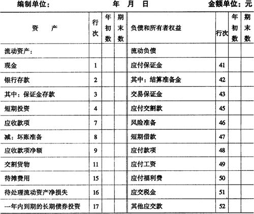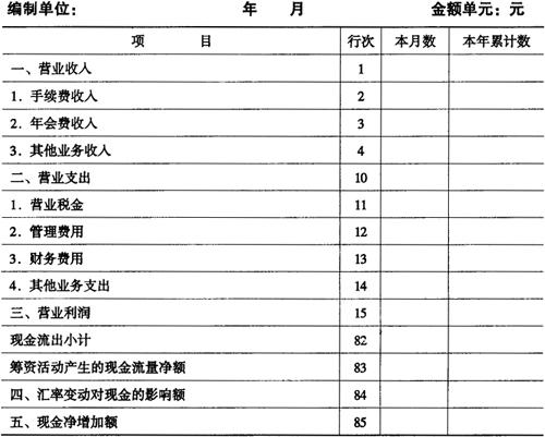 释义 | 现金流量表 本表反映期货交易所在年度内有关现金和现金等价物的流入和流出的信息。现金流量表应当按照经营活动产生的现金流量、投资活动产生的现金流量和筹资活动产生的现金流量分别反映。本表所指的现金流量,是指现金的流入和流出。现金流量表一般按现金流入和流出总额反映。对于向会员收取和支付的现金以及周转快、金额大、期限短的项目的现金收入和现金支出,以净额反映。 期贷交易所现金流量表的示范格式如表3-3-4。 表3-3-4 现金流量表 补充资料:质押品实际价值__元; (二)利润表 期货交易所利润表的示范格式如表3-3-6。 表3-3-6 利润表 期货交易所现金流量表各项目的内容及填列方法如下: (1)经营活动产生的现金流量。 ❶ “收取的交易手续费收到的现金”项目,反映期货交易所提供交易结算服务实际收到的现金。本项目可以根据“手续费收入”、“应付保证金”等科目的记录分析填列。 ❷ “收取的交割手续费收到的现金”项目,反映期货交易所提供交割结算服务实际收到的现金。本项目可以根据”手续费收入”、“应付保证金”等科目的记录分析填列。 ❸ “收取的年会费收到的现金”项目,反映期货交易所向会员收取年会费实际到的现金。本项目可以根据“年会费收入”、“应付保证金”、“银行存款”等科目的记录分析填列。 ❹ “利息收入收到的现金”项目,反映期货交易所实际收到现金的利息收入。本项目可以根据“财务费用”、“银行存款”等科目的记录分析填列。 ❺ “收取的会员保证金净额收到的现金”项目,反映期货交易所收取会员保证金实际收到的现金。本项目可以根据“应付保证金”、“银行存款”等科目的记录分析填列。 ❻ “收取的席位占用费收到的现金”项目,反映期货交易所向会员提供交易席位而实际收到的现金。本项目可以根据“应付席位费”、“应付保证金”、“银行存款”等科目的记录分析填列。 ❼ “收取的交易手续费收到的现金”项目,反映期货交易所提供交易结算服务实际收到的现金。本项目可以根据“手续费收入”、“应付保证金”等科目的记录分析填列。 ❽ “收取的交割货款净额收到的现金”项目,反映期货交易所向会员收取交割贷款实际收到的现金。本项目可以根据“应付交割款”、“银行存款”、“应付保证金”等科目的记录分析填列。 ❾ “拍卖交割货物收到的现金”项目,反映期货交易所因买方会员违约而公开拍卖交割货物实际收到的现金。本项目可以根据“交割货物”、“银行存款”、“应交税金”等科目的记录分析填列。 ❿ “收取的其他与经营活动有关的现金”项目,反映期货交易所除了上述各项目外,收到的其他与经营活动有关的现金,如捐赠现金收入、罚款收入、流动资产损失中由个人赔偿的现金收入等。收到的其他与经营活动有关的现金项目中如有价值较大的,应单列项目反映。本项目可以根据“营业外收入”、“营业外支出”、“现金”、“银行存款”、“其他应付款”等科目的记录分析填列。 ⑾“代购交割货物支付的现金”项目,反映期货交易所因卖方会员违约而公开征购交割货物实际支付的现金。本项目可以根据“交割货物”、“应付交割款”、“应交税金”、“银行存款”等科目的记录分析填列。 12、“支付会员利息的现金”项目,反映期货交易所向会员支付保证金存款利息实际支付的现金。本项目可以根据“其他应付款”、“应付保证金”、“银行存款”等科目的记录分析填列。 ⒀“支付给职工以及为职工支付的现金”项目,反映期货交易所实际支付给职工,以及为职工支付的现金,包括本期实际支付给职工的工资、奖金、各种津贴和补贴等,以及为职工支付的养老保险、住房公积金、支付的离退休人员的费用等。本项目可以根据“现金”、“银行存款”、“管理费用”、“应付工资”、“应付福利费”等科目的记录分析填列。 ⒁“支付管理费用的现金”项目,反映期货交易所向会员支付保证金存款利息实际支付的现金。本项目可以根据“其他应付款”、“应付保证金”、“银行存款”等科目的记录分析填列。 ⒂“支付营业税款的现金”项目,反映期货交易所实际支付的营业税款。本项目可以根据“其他应付款”、“应交税金”、“银行存款”等科目的记录分析填列。 ⒃“支付所得税款的现金”项目,反映期货交易所实际支付的所得税。本项目可以根据“应交税金——应交所得税”科目的借方发生额记录分析填列。 ⒄“支付除营业税、所得税以外其他税费的现金”项目,反映期货交易所按规定支付的除营业税、所得税以外的税费,包括本期发生并支付的税费和预交的税费,以及本期支付以前各期发生的税费和预交的税金。本项目可以根据“其他应付款”、“其他应交款”、“待摊费用”、“应交税金”、“现金”“银行存款”等科目的记录分析填列。 ⒅“支付的其他与经营活动有关的现金”项目,反映期货交易所除上述各项目外,支付的其他与经营活动有关的现金,如捐赠现金支出、罚款支出、支付的差旅费、业务招待费现金支出、支付的保险费等,支付的其他与经营活动有关的现金项目中如有价值较大的,应单列项目反映。本项目可以根据“管理费用”、“现金”、“银行存款”、“营