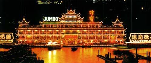 释义 | 珍宝海鲜舫 香港仔黄竹坑深湾的珍宝海鲜舫是全球最大的海上餐馆,也是香港最具特色的旅游热点之一。它由“珍宝”,“珍宝皇宫”及“太古”三艘画舫组成,采用华丽宫廷设计,高贵典雅。食客可乘坐专用渡轮直达,欣赏海港美景。 |