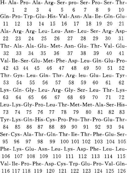 释义 | 瑞拉司亭 C367H1003N171O187S8(protein moiety reduced) CAS-127757-91-9 21~34千道尔顿单位。 一个单链,由127氨基酸组分糖基化的多糖肽,以中国地鼠卵巢细胞表示。菌落一刺激因子2(人克隆PCSP-1-蛋白还原部分)。 21~34 Kilodaltone.A single chain,glycosylated polypeptide of 127 amino acid residues,expressed in Chinese hamster ovary cells.Colony-stimulating factor 2(human clone pCSF-1-protein moiety reduced). 骨髓兴奋药。 Regramostim,GMC 89-107,GM-CSF,rhCm-CSF. INN,USAN. Glu-OH 127 (carbohydrate composition): Fucose 1.7~1.9 Mannose 6.1~7.2 Galactose 9.7~9.9 N-Acetylgalactosamine 1.8~2.0 N-Acetylglucosamine 10.3~12.5 Sialic Acid 8.5~11.2 mean % Carbohydrate 35.2~38.3 |