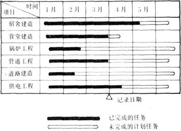 释义 | 甘特图法 又称作“线条图”法,是用图表显示施工或生产进度的一种方法。 由美国工程师、科学管理的倡导者亨利·甘特(H·cantt)在第一次世界大战中首创使用,故命名为“甘特图”法。“甘特图”法可用以表示计划任务、计划进度和记录工作实绩等,具有简单、明了、易于编制的优点。“甘特图”为棋盘式表格,其横向表示时间,纵向表示工作项目,通过在图表上标制线条来表示生产或施工时间和工作量的情况,以有效地衔接计划和实际进度,取得更大的效果。 例如某工程项目的“甘特图”表示法如下: “甘特图”法创用后,被各个国家所推广采用,甘特图也逐步发展成为网络图。 |