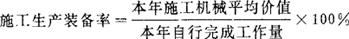 为了综合反映建筑施工活动的技术装备水平,可以计算施工生产装备率。其计算公式如下: