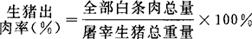 释义 | 生猪出肉率 指活猪屠宰后,除去头蹄下水等所得的净肉重量(包括腰子、板油)同活猪重量之比。 用百分数表示。是评定生猪质量的一个重要指标。 同一种猪,由于肥瘦不同,饲养条件不同,出肉率也不完全一样。其计算公式为: |