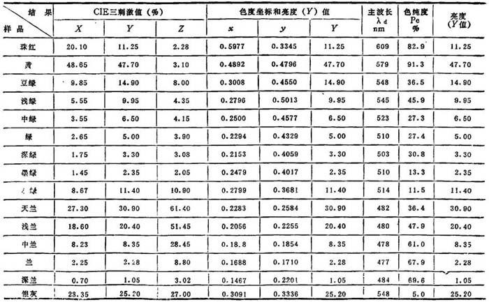 释义 | 生理物理的方法 这种方法是用物理的方法进行测定,但以生理的方法来解释。 在生理学中,三种感光体学说是与三基色原理相符合。这一学说假设人眼中有三组感光细胞,它们分别对红、绿、蓝三基色最为敏感。我们可以把眼睛作为接受器,对著三种不同的光谱敏感中心做一叙述,即人类眼睛的颜色感觉机能是不完全相同的。 1.标准观察者 在仔细检验了标准颜色视觉的人以后,国际照明协会(I.C.I或称C.I.E)于1931年综合了一个假定的标准观察者,即依据于一些有正常颜色鉴别能力的人,得到的平均颜色鉴别。标准观察者的三组感光细胞对不同波长颜色的灵敏程度可用三条光敏曲线(X红、Y绿、Z蓝)来表示,如图10—5—7所示。图10—5—8也说明了三种基本刺激的三刺激分布因素。 2.颜色的三刺激值 人们的各种颜料感觉都是由三组感光细胞所受到的三基色剌刺的不同比例和绝对值得出的。 图10—5—8说明了如何从决定颜色感觉的反射率坐标中得出三个标准颜色刺激的数值。在试验中,被观测的试样是由其反射率曲线〔R〕表示其颜色特性,并由具有一定光谱能量分布的光源〔E〕来照明。R×E表示在单一波长情况下进入眼睛的能量,即试样的反射率和光源的能量分布乘积。这个反射光能由眼睛的三组感光细胞按著它们的敏感性分别记录下来,传送到大脑后,产生得到颜色视觉的三个不同颜色刺激的量,在最后的图线上用面积表示。如果我们明确了眼睛的刺激坐标,并且用于照明的光谱成分是标准的,则得出的这三个面积其积分就可以分别计算出来。以此方法得出的三个数值称为标准颜色值或颜色三刺激值X、Y、Z。 3.X、Y、Z三刺激值的测定和计算 根据上述的人对颜色生理视觉的原理,人们采用物理方法对颜色视觉进行测量,其方法是,用光电色泽计测定试样对红、绿、蓝三基色光的反射率,分别以X、Y、Z表示,此三项数值亦相当于人的颜色生理视觉的三刺激值X、Y、Z。通过下式又可进一步计算出相对的三色系数,分别以x、y、z表示: 将曲线两端用直线连接起来,则所有实际的颜色都包含在舌形曲线和直线所包围的范围内,即任何颜色都可用这个面积内的一个点来表示,其色度由这个点的座标x和y来确定。 图中,无色点(白、灰)在中心,同色调但不同饱合度的颜色座落在无色点和谱色点之间的直线上。互补色在舌形图内互相对应。 如能求出任何颜色的X.Y.Z三刺激值,就能表示出其颜色。由X.Y.Z再求出色度座标x、y,并在色度图中标出其位置,则能更直观地辨别出颜色,但这还不能表示出颜色的明亮程度。为此,通常再加上一个表示亮度的Y值(即三刺激值中的Y刺激值),这样就可较全面地表示出一个颜色,例如,一黄色书皮纸的颜色测定结果为x=0.4428,y=0.494,Y=71.1%。 5.以主波长,色纯度和亮度表示颜色 前面曾提出颜色有三个特性,即色相(色调)、饱合度(深度)和亮度(明度、鲜艳度)。如果以颜色的这三个特性来表示某一颜色的测定结果,则会给人们以更具体的颜色印象。为此,通常还用主波长、色纯度和亮度三个值表示颜色。 (1)主波长 匹配某一样品颜色主要光谱色的波长为该颜色的主波长,以λd表示。主波长决定了试样呈现的颜色,如主波长600nm左右为红色、575nm左右为黄色、510nm左右为绿色、470nm左右为蓝色。颜色的主波长相当于日常生活中观察到的颜色色相(色调),为此用它表示颜色的色相特征。 (2)色纯度(饱合度或刺激纯度) 色纯度表示样品反射主波长光的比例,以Pe表示。纯度100%即表示只反射主波长的光线。色纯度即相当于颜色的饱合度(深度)特征,纯度越高,颜色越浓艳。 如表10—5—15中所列5种不同蓝纸的色纯度,天蓝、浅蓝、中蓝、蓝、深蓝等随著颜色的加浓,其纯度分别为36.4%,47.9%、61.0%,67.9%和69.6%。 (3)亮度 亮度在三刺激值中以Y(%)值表示,Y值越高,表示颜色越明亮。 (4)使用方法 主波长和色纯度可由CIE色度图求出,如在图10—5—10中,由光源点C通过某一颜色的坐标点连一直线,再延长使其与舌形曲线相交于M'点,M'点的波长509即是该颜色的主波长λd。CM线段与CM'线段之比即 如果由光源C通过某一颜色的x、y坐标点如N连成直线不能与舌形曲线相交,而与连接舌形曲线端点的直线相交于N',则该颜色没有主波长。这时将CN直线向相反方向延长使之与舌形曲线相交于N″,则N″点的波长称之为该颜色的补主波长,用λc表示。在CIE色度图中,通过光源点划直线两端与舌形曲线或直线相交的两个点,均表示互为补色的两个颜色。 以上均为CIE—XYZ测色制表示颜色的方法,可概括为三种方式,每种方式均由三个数值表示之: 表10—5—16为15种不同颜色的色纸对其颜色进行测定的结果,并分别以三种方式表示之。 表10—5—16 |