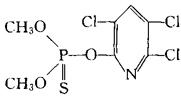 释义 | 甲基氯吡磷 又称甲基毒死蜱。 有机磷广谱杀虫剂。化学名称:O,O-二甲基O-3,5,6-三氯-2-吡啶基硫逐磷酸酯。化学结构式如下。 原药为白色颗粒状结晶,稍带硫醇味,熔点45.5~46.5℃,25℃时蒸气压562.62× 10-5Pa。 几乎不溶于水,25℃时水中溶解仅5mg/kg,微溶于乙醇和甲醇,易溶于丙酮、苯、乙醚、氯仿等多数有机溶剂。中性溶液稳定,遇酸(pH4~6)和碱(pH8~10)水解。 具有触杀、胃毒和熏蒸作用。可用于防治水稻螟虫纵卷叶螟、稻飞虱、叶蝉、黏虫、棉铃虫、红铃虫、盲蝽象、蚜虫、螨类及多种果树、蔬菜害虫,也可用于防治贮粮害虫。对人、畜的毒性比毒死蜱低,大鼠急性口服LD50为1824~2472mg/kg,急性经皮LD50>2800mg/kg。对鱼等水生动物有毒,鲤鱼TLm(48h)4.0mg/kg。 ADI值为0.01mg/kg。 |