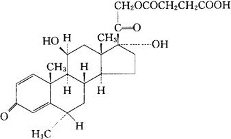 释义 | 甲泼尼龙半琥珀酸酯 C26H34O8=474.55 CAS-2921-57-5 (6α,11β)-21-(3-羧-1-氧代丙氧-11,17-二羟-6-甲基孕甾-1,4-二烯-3,20-二酮。 (6α,11β)-21-(3-Carboxy-1-oxopropoxy-11,17-dihydroxy-6-methylpregna-1,4-diene-3,20-dione. 11β,17,21-三羟-6α-甲基孕甾-1,4-二烯-3,20-二酮21-(氢琥珀酸盐)。 11β,17,21-Trihydroxy-6α-methylpregna-1,4-diene3,20-dione 21-(hydrogen succinate). 肾上腺皮质激素类药。 半琥珀酸甲泼尼龙。 Methylprednisolone Hemisuccinate. USAN,USP. |
