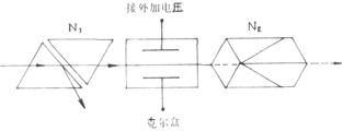 释义 | 电光效应及其应用 电光效应有两种: (1)克尔效应 克尔于1875年第一个发现电光效应,即某些各向同性的透明介质在外加电场作用下变为各向异性,表现出双折射现象,介质变成具有单轴晶体的特性,其光轴沿电场方向。 设n∥与n⊥分别为介质在外加电场后,光的电矢量平行和垂直电场方向时的折射率,实验表明: △n=n∥-n1=λ。KE2 式中λ0为光在真空中的波长,K称为克尔常数。 克尔效应最重要的特点是几乎没有延迟时间,即它随著电场的产生与消失很快地产生和消失。 利用克尔效应可以制成光开关及光调制器(常称为克尔开关及克尔调制器),其基本原理如下图所示,两偏振镜N1与N2呈正交,并且它们的偏振取向最好与电场方向分别成±45°角。 克尔盒为盛有介质的二端透光的容器,内有长为1、间隔为d的两平行板电容器作为电极。两极加不同电压时,透过N2的光强随之作相应变化。使电压分别取O和 现已发现有实用价值的是克尔常数较大的材料有硝基笨C6H5NO2、硝基甲苯C7H7NO2、混合晶体铌酸钽钾(KTa0.65Nb0.35O3简称KTN)及钛酸钡(BaT1O7)等。 (2)泡克耳斯效应铷1893年泡克耳斯发现另一种电光效应,即有些晶体(特别是压电晶体),它们是各向异性的无对称中心的晶体,在外电场作用下可改变它们的各向异性的性质,称之为泡克耳斯效应。该效应与电场的关系是线性的。类似地,泡克耳斯盒也可作为光开关及光调制器。 制作泡克耳斯盒的材料有磷酸二氢铵(NH4H2PO4,简称ADP)和磷酸二氢钾(KH2PO4,简称KDP)、磷酸二氘钾(KD2PO4,简称KD*P)、钽酸锂、磷酸二氢铷、铌酸锂、钛酸钡以及铌酸钡钠等。 |