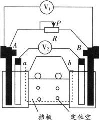 A.伏特表V1所测量的电压为内电压,伏特表V2所测量的电压为外电压 B.伏特表V1所测量的电压为外电压,伏特表V2所测量的电压为内电压 C.通过伏特表V1的电流由左流向右,通过伏特表V2的电流由右流向左 D.通过伏特表V1的电流由左流向右,通过伏特表V2的电流也由左流向右 分析 此装置为测量闭合电路的内、外电压的实验装置示意图,其中电压表V1所测量的为外电压U,电压表V2所测量的为内电压Ur,电流在外电路中由高电势流向低电势,而在电源的内部则由低电势流向高电势,图中的左端为电源的正极,右端为电源的负极,故电流流过伏特表V1的电流由左向右,故流过伏特表V2的由右向左,所以正确的答案为BC. |