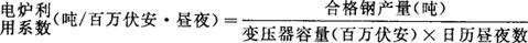释义 | 电炉利用系数 指电炉每昼夜单位设备能力的平均产量。 它是反映电炉设备综合利用程度的指标,并综合地反映技术操作水平的高低及管理工作的好坏。其计算公式如下: 式中,合格钢产量包括合格钢锭和供浇注用的合格钢水产量;变压器容量按铭牌容量计算,已经过改造的变压器按测定的容量计算。电炉是利用电弧产生强大的热能来炼钢的。电弧产生热能大小,取决于变压器容量的大小。 充分发挥变压器容量和充分利用热能,对缩短炼钢时间有著决定性的作用。电炉利用系数愈高,说明电炉设备利用情况愈好。 |