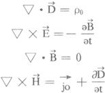 麦克斯韦在原静电场及稳定电流磁场的有关基本定律的基础上,引入了涡旋电场及位移电流的新假说后,建立了描述一般电磁场的麦克斯韦方程组,其微分形式为  式中ρ0是自由电荷密度, 是传导电流密度,此方程尚需补充三个描述介质性质的方程式才完备。 对于各向同性介质,有    这里ε0及α0分别为真空介电常数及真空磁导率,ε及u分别是相对介电常数及相对磁导率。于是求解一般电磁场的问题归结为结合边界条件求解麦克斯韦方程组的问题。 麦克斯韦于1865年由其电磁理论预见了电磁波的存在,20余年后,赫兹于1888年用实验第一次直接证实了电磁波的存在。现在人们已经清楚,除无线电波外,红外线、可见光、紫外线、X射线及γ射线等都是各种波长或频率范围的电磁波。 |