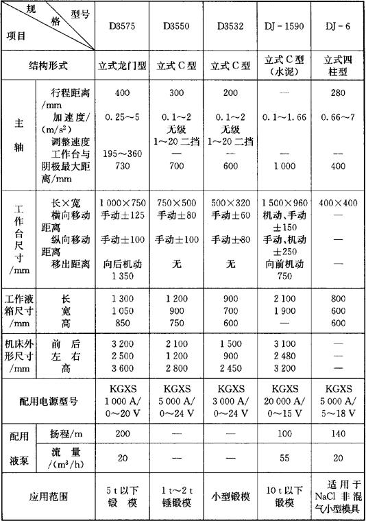 (一)电解加工的原理、特点及应用(表5.6-24) 表5.6-24 电解加工的原理、特点及应用 图5.6-18 表5.6-28 型腔电解加工机床规格  对于大型模具型腔加工宜采用龙门式结构机床;中小型模具选用C型结构机床或四柱式机床,并配合适电源及液泵。 (四)电解加工型腔的方法 1.阴极材料与加工 阴极材料:20,20Cr,45,45Cr,1Cr18Ni9Ti,黄铜,紫铜等。 阴极的工作表面根据图纸经铣削轮廓外形及型面,再依据型面样板进行钳工修磨成所要求的形状。也可采用电解反拷加工法成型。 2.型腔加工法 电解加工型腔的方法主要有两种,即混气电解加工法和非混气电解加工法。混气电解加工是在电解液中混入一定量的气体,使气液混合物输入加工间隙进行加工。 (五)提高电解加工精度的途径 ❶ 采用脉冲电解加工。 ❷ 采用小间隙电解加工。 ❸ 改进电解液,采用低浓度电解液。 ❹ 采用混气电解加工。 |