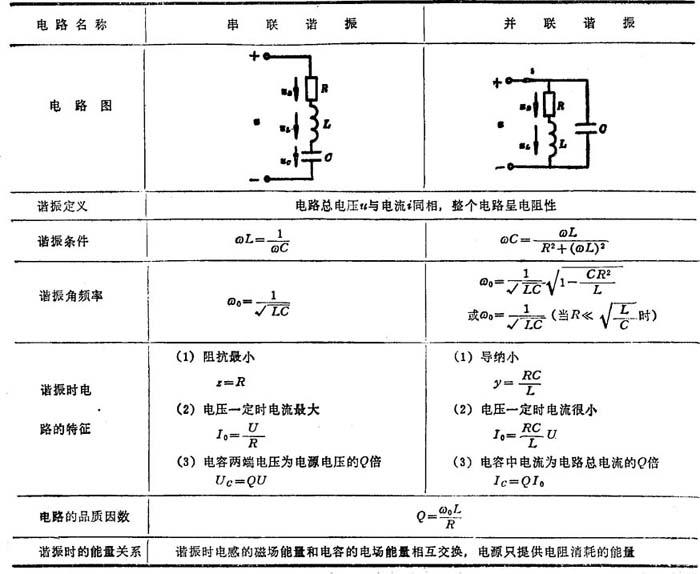 释义 | 电路中的谐振 谐振是电路中同时含有电感和电容出现的特殊现象,分串联谐振(也称电压谐振)和并联谐振(也称电流谐振),其对照见表8.1-7。 表8.1-7 串联谐振和并联谐振对照 谐振电路具有选择某种频率的性能称为选频特性。电路选频特性的优劣决定于电路的品质因数Q,品质因数愈高,电路的选频特性愈好。 在RLC串联电路中,当电源电压一定时,电路中电流不低于谐振时电流1/ 式中ω0和f0分别为谐振角频率和频率;△ω和Δf是通频带宽度。 |