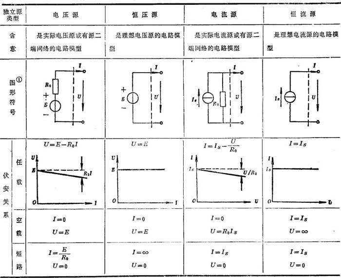 释义 | 电路元件 电路元件分有无源元件和有源元件。无源元件有电阻、电感和电容,其图形符号、伏安关系和主要物理性质见表8.1-1。 表8.1-1 无源元件图形符号、伏安关系和主要物理性质 电路中的有源元件有独立源和受控源。独立源的电压或电流是定值,或是一定的时间函数,与电路中其它的电压或电流无关。独立源有电压源(实际电压源)、恒压源(理想电压源)、电流源(实际电流源)和恒流源(理想电流源),它们的含意、图形符号和伏安关系见表8.1-2。 表8.1-2 各种独立源的含意、图形符号和伏安关系 注❶ 图中虚线右侧表示外电路。 受控源是一种非独立源,它用来反映电路中某处的电压或电流受另一处的电压或电流控制的物理现象的模型,是具有一对输入端和一对输出端的双口网络,常用于电子电路的分析与计算。按受控源的性质,可分为受控电压源和受控电流源两类。受控电压源的电压受电路中其它电压或电流控制,其电压按一定规律变化,而与通过它的电流无关。受控电流源的电流受电路中其他电压或电流控制,其电流按一定规律变化,而与其本身两端的电压无关。理想受控源的类型、电路模型和特点见表8.1-3。 线性电路中受控源必须是线性的,即表8.1-3中的参数为常数。在非理想的情况下,受控源的输入电阻和输出电阻具有有限值(不为零或无穷大)。 表8.1-3 理想受控源的类型、电路模型和特点 |