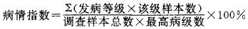 又称感染指数。衡量植物发病率和病害严重度的综合指标。最高值为100,完全无病者为0,计算式为: